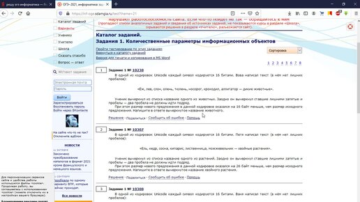 ОГЭ информатика. Задание 1 - Количественные параметры информационных объектов