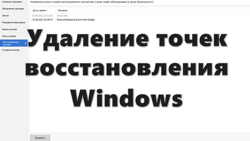 Удаление точек восстановления системы