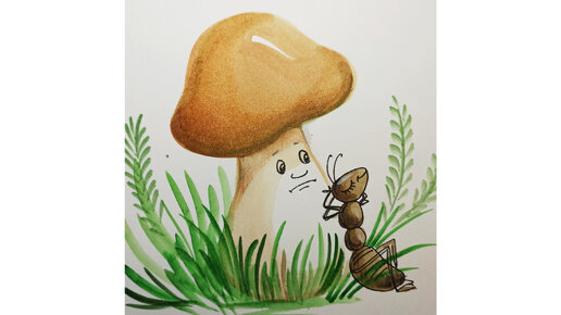 Гриб и муравей. Иллюстрация к сказке.
