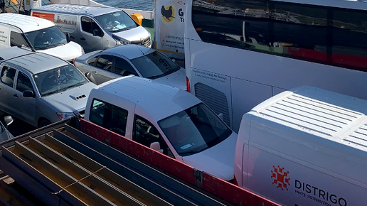Переплываем Босфорский пролив возле Стамбула в Турции. Вместе с машинами и автобусами. Увлекательно и комфортно за две минуты