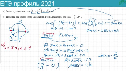 Тригонометрическое уравнение из ЕГЭ математика профиль 2021