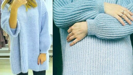 Голубой джемпер оверсайз английской резинкой. Теплый вариант с двойной нитью кидмохера