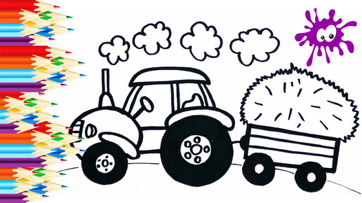Как нарисовать СИНИЙ ТРАКТОР С ПРИЦЕПОМ / Рисунок раскраска для детей