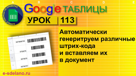 Google таблицы. Урок 113. Автоматическая генерация штрих кодов и вставка их в документ
