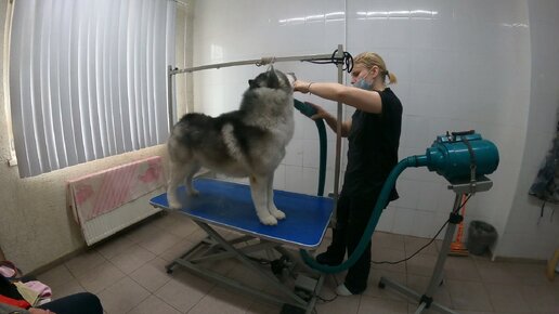 Преображение собаки из грязной северной дворняжки в выставочную хаски. Работа профессионала.