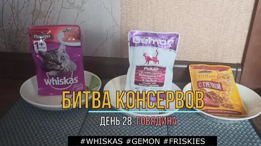 Битва консервов. День 28. Говядина. #WHISKAS® #GEMON® #FRISKIES® .