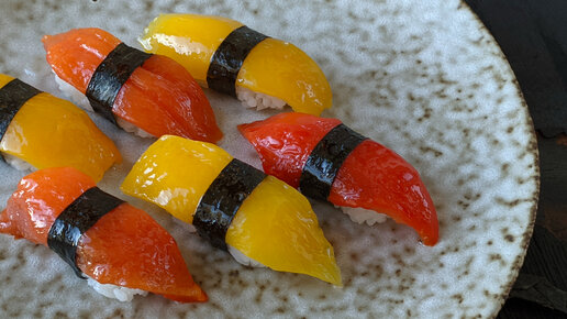 Готовлю и пробую суши с печеным болгарским перцем. Это очень вкусно!