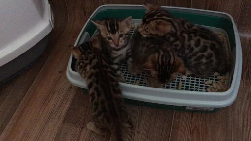 Бенгальская кошка приучает детей бенгальских котят к лотку