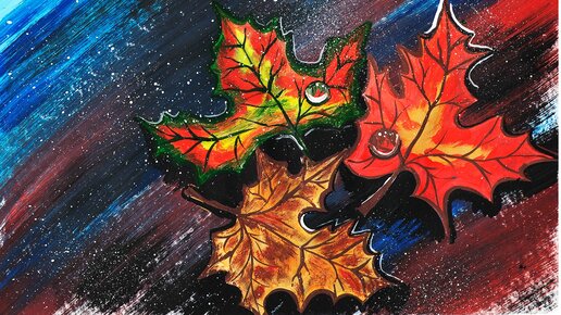 Как нарисовать осенний пейзаж. Рисуем кленовые листья. Осень красками.