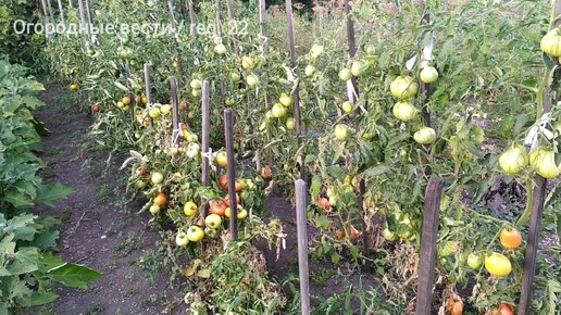 Показываю, какой урожай томатов получился из очень слабой, едва живой рассады при посадке в траншеи, "лёжа"