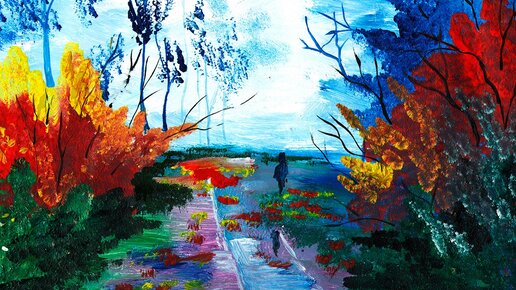 Как нарисовать осенний пейзаж. Рисуем осень в парке. Картина для интерьера. Осень красками.