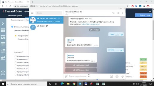 Настройка Telegram-оповещений в системе мониторинга Elecard Boro