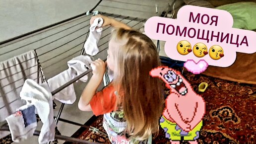 Влог/бабушкина помощница,Викуля, вешает белье/Что готовим на обед/Погода совсем не радует/