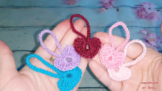 Сердечко крючком / Аппликация сердечко / Брелок сердечко