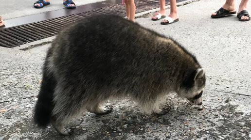 Как один енот прогнал другого. Злится и рычит