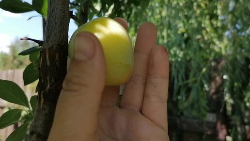 На привитой мною веточке алычи к обычной жёлтой сливе зреет первый плод. 27.07.2021.