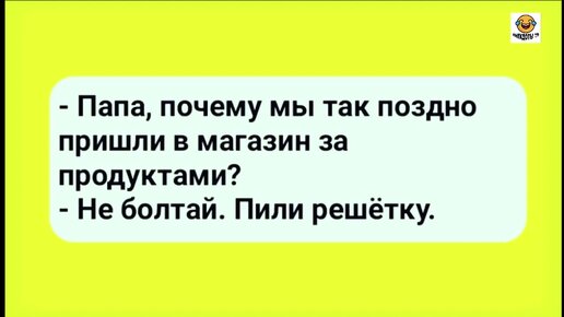 - Папа, почему мы так поздно пришли в магазин за продуктами? - Не болтай. Пили решётку