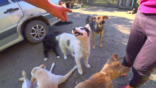 Собаки хаски, любят рыбу. Команда - сидеть.