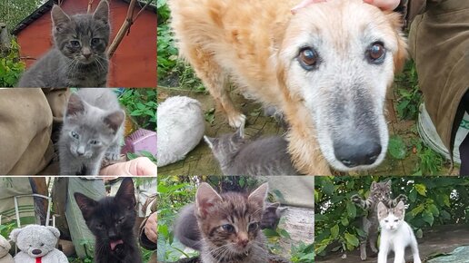 Маленькие пушистики. Бездомные котята и собака одна семья.