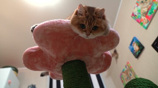 Посмотрите куда я забрался 😺 Щекастый котик осваивает новую когтеточку в форме кактуса 😸