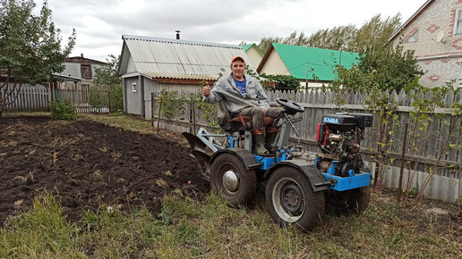 Пашу огород "Бурлачком" - самодельным мини-трактором