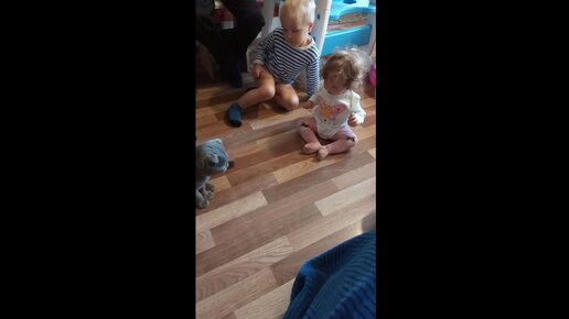 Так рады коту!!!(8 месяцев и брату 3 года)