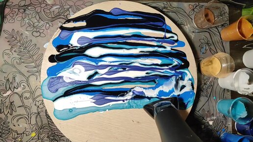 Море...море... С помощью фена рисую морской берег. Абстракция.