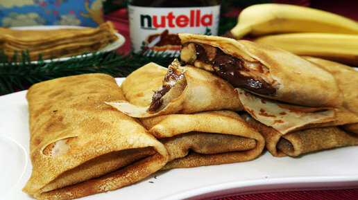 Блинчики с бананом и нутеллой. Невероятно вкусные блины с шоколадной начинкой!