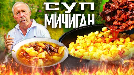 ОДЕССКИЙ СУП "МИЧИГАН" с ОТВАРНЫМ ЯЗЫКОМ и ЖАРЕНЫМ КАРТОФЕЛЕМ в КАЗАНЕ на КОСТРЕ.