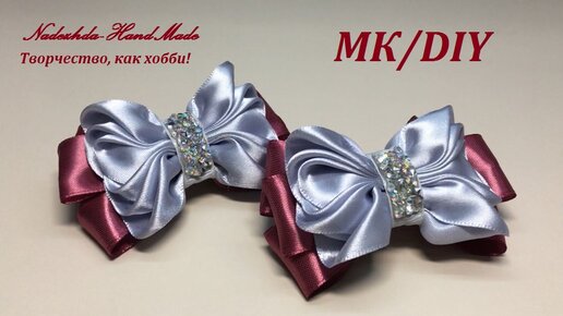 Серо-брусничные бантики-очаровашки. МК/DIY. Flowers from ribbons.