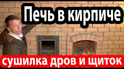 Чугунная ПЕЧЬ в КИРПИЧЕ! Сушка для ДРОВ. Кирпичный ЩИТОК