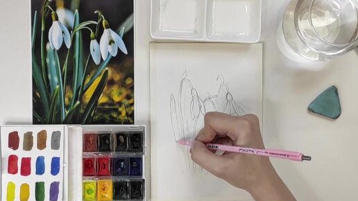 Рисую нежные подснежники акварелью быстро и легко - подробный урок для начинающих и с нуля