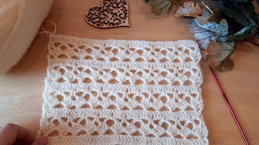 Вяжем узор с горизонтальными, ажурными дорожками крючком.