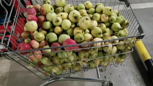 Возим яблоки из деревни тележками на переработку