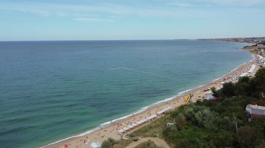 Полупустой пляж Учкуевка в Севастополе : Черное Море с высоты птичьего полета