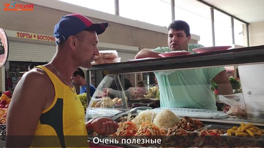 Крым: Идём по рынку, пробуем морские деликатесы. Продавец взвешивает больше, чем мы ожидали