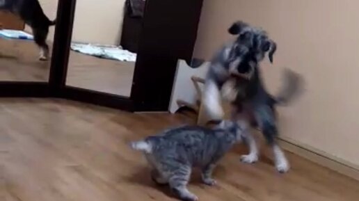 Знакомство кота и собаки прошло не очень гладко