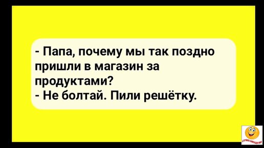 - Папа, почему мы так поздно пришли в магазин за продуктами? - Не болтай. Пили решетку