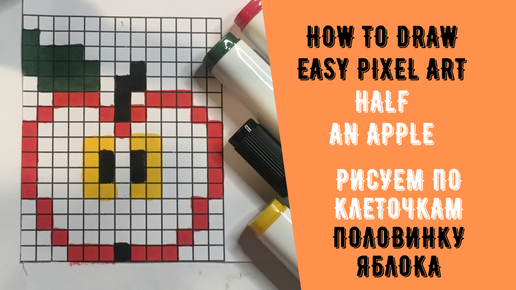 Как нарисовать по клеточкам половинку яблока. Пиксель арт