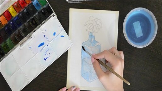 Пошаговый урок с рисованием цветка в бутылке для начинающих