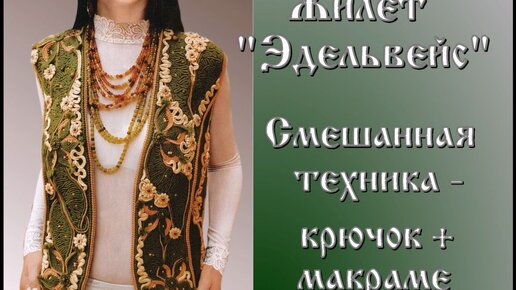Жилет "Эдельвейс". Смешанная техника - вязание крючком + макраме.