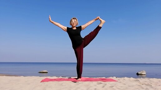 Йога на море. Тренируем равновесие и глубокие наклоны.