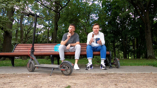 Гуляем с другом по парку на самокатах на районе, где я раньше жил в Москве