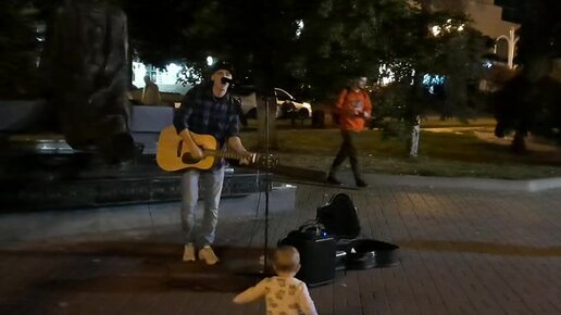 Уличный музыкант в Курске. Ребенку понравилось, и молодежь танцует