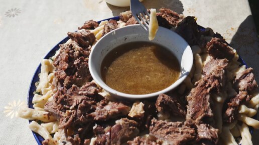 ЧЕЧЕНСКАЯ КУХНЯ. ЖИЖИГ ГАЛНАШ В КАЗАНЕ НА КОСТРЕ