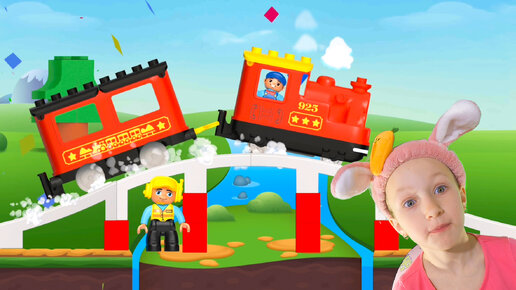 Диана играет Lego паровозики - детская железная дорога