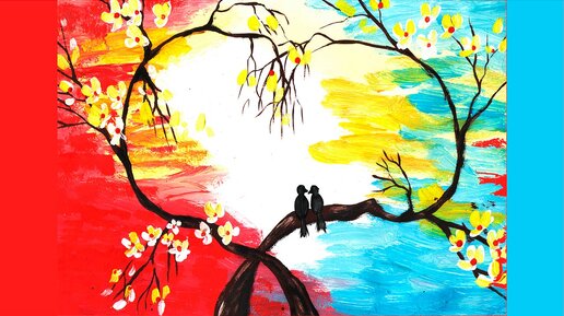 Рисуем пейзаж гуашью. Рисуем дерево любви. Правополушарное рисование.