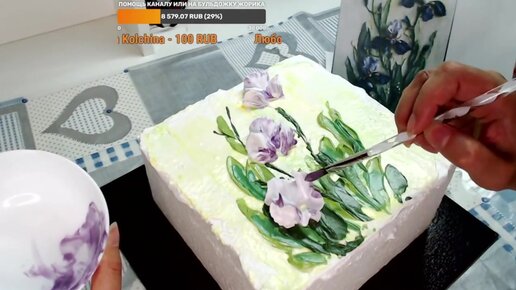 Рисуем кремом цветы на торте_Como desenhar flores de creme no bolo