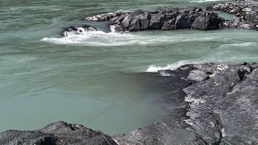 Быстрое течение и огромные камни на берегу великой Сибирской реки