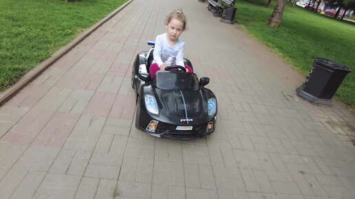 Ксюше нравится ездить на маленькой полицейской машине